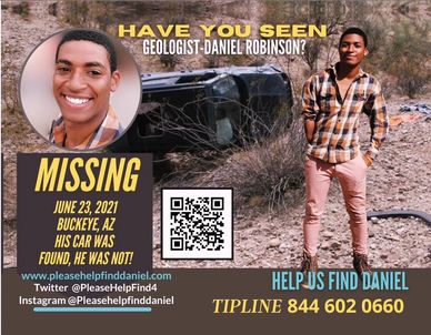 Daniel Robinson was last seen on June 23, 2021, leaving his worksite in the Sonoran Desert of Maricopa County, AZ. He was driving his 2017 blue-grey Jeep Renegade and is believed to have headed west, deeper into desert terrain.